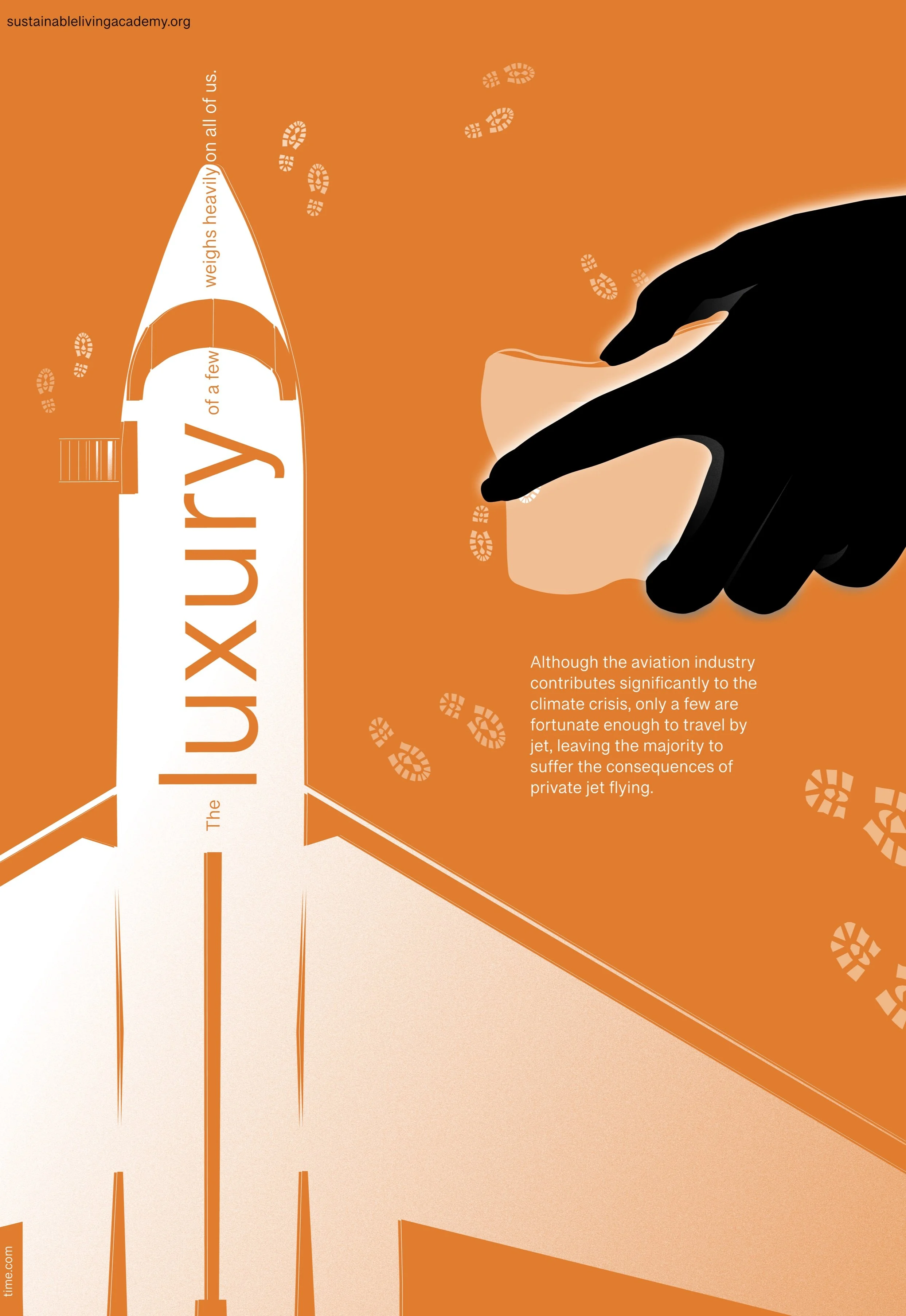 The white silhouette of primary CO2 polluters is enhanced by the attractive colors used in the background of the poster series. Throughout the series, I valued a simplistic design, slogan, and descriptive caption to highlight the importance of the damage committed to our environment and health by the aviation industry, deforestation, and fossil fuels. The silhouettes show a private jet plane, a tree trunk, and fossil fuels, all contributing to our environmental and health decline. Clearing forests for land use is capable of causing fires, while fossil fuels heavily affect our air quality. Lastly, flying private jets is a luxury that omits large amounts of pollution. There are attempts by the general public to clean up after these polluters by enforcing sustainable practices and environmentally friendly customs.